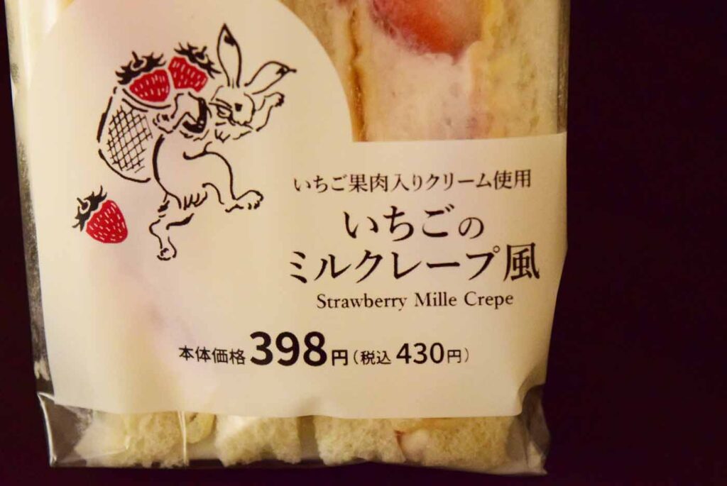 今回はローソンの「いちご狩り!!」ラインナップの1つ「ICHIBIKO監修 いちごのミルクレープ風サンド」430円(税込)を実食(2023年時)。ICHIBIKO監修品は2025年まで出ていたのですが……2026年「ローソンでいちご狩り」では出なそうですね。