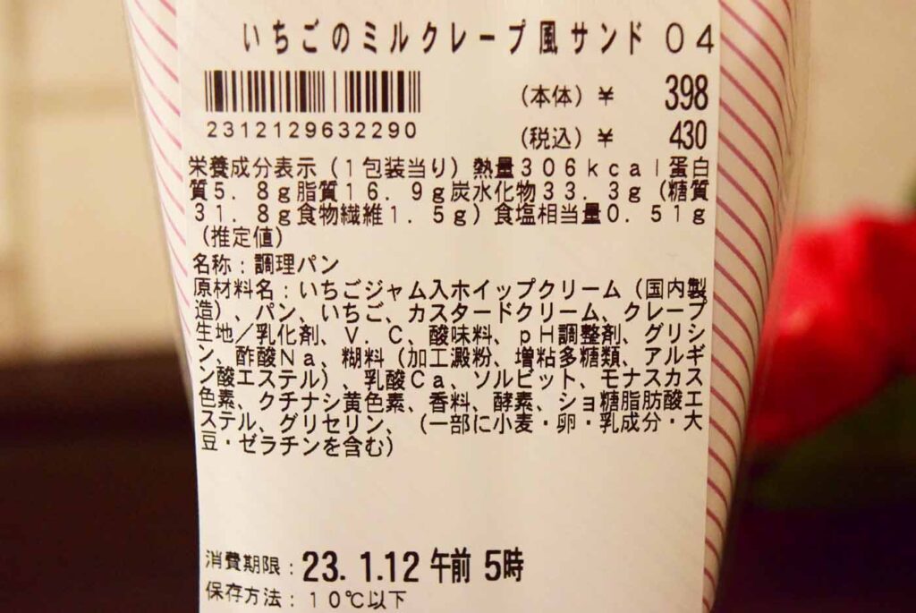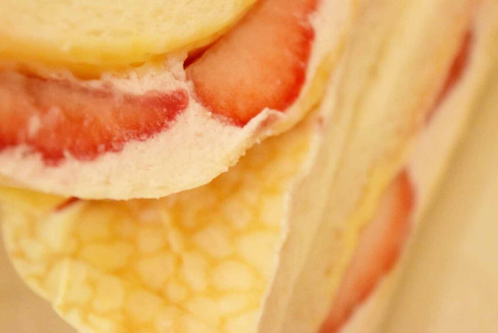公式HPによると「いちごと苺ジャム入りホイップ、クレープ生地、カスタードを合わせたミルクレープ風サンド」とのこと。ICHIBIKO監修商品なので期待が膨らみます。