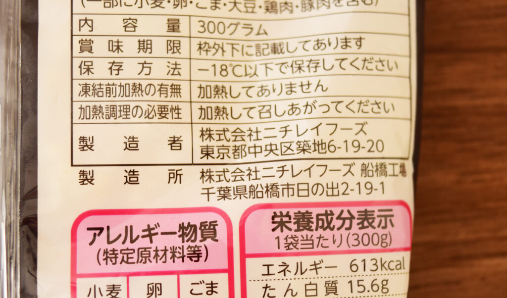 天下一品監修なので天下一品が製造しているのかと思いましたが、ニチレイフーズが製造元とのこと。