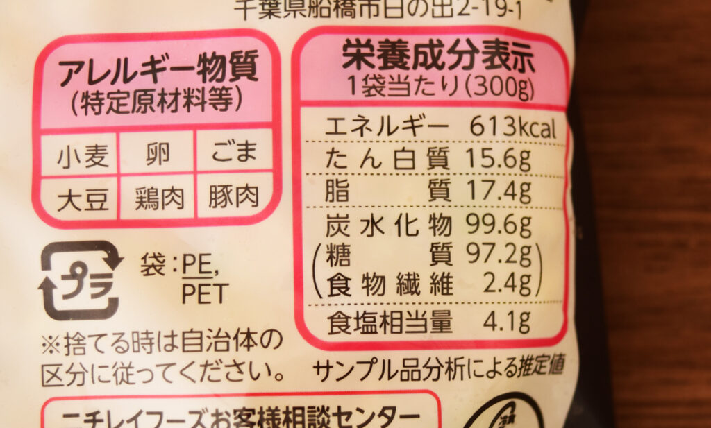 1袋あたり613kcal。食塩相当量4.1g。