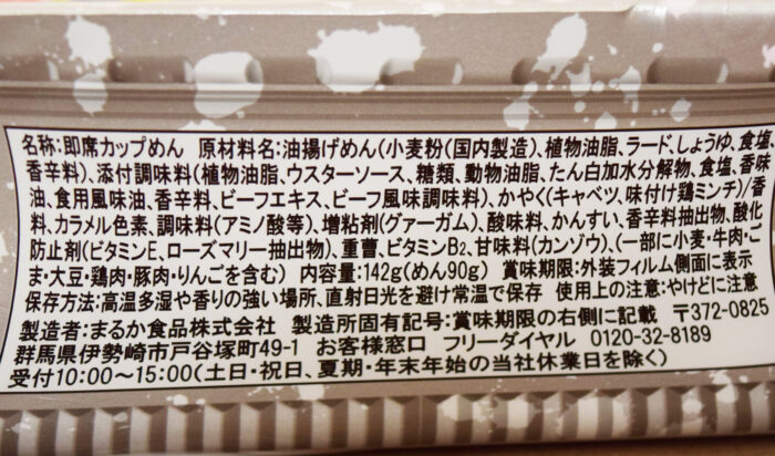 原材料名には食用風味油という文字が。油そばを意識していますね。これのせいでカロリー高くなってるのかな?