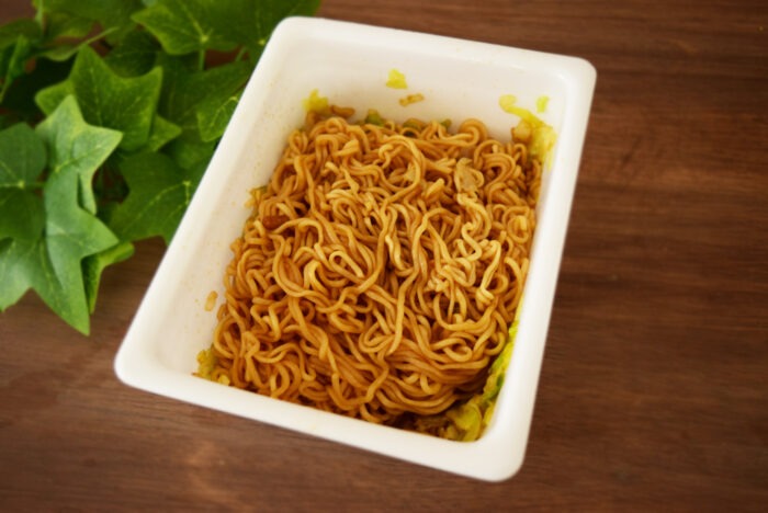 出来上がりはこちら。匂いは普通のペヤングと変わりません。