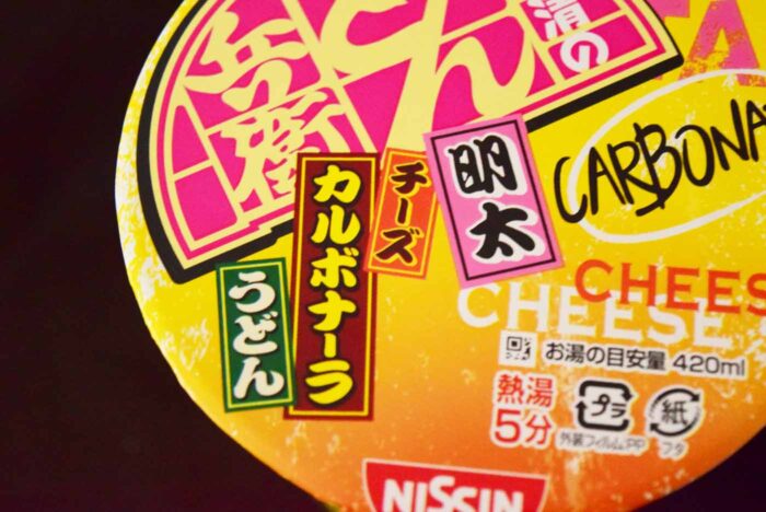 「明太・チーズ・カルボナーラ・うどん」と属性が4つもあります…盛りすぎですね。キャッチフレーズも「ウマいやつ”、全部詰め込んじゃいました!」とのことなので間違ってはいませんが。