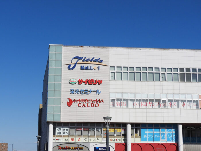 フィールズ南柏はモールが2棟あります。モール1は線路の真横に立っている建物で、栄光ゼミナールやホットヨガなどの店舗があります。