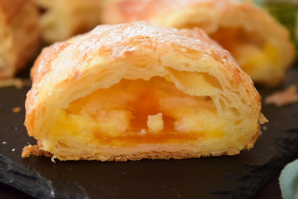 マンゴーヨーグルトを食べているような感覚になりました。パイ生地はサクサクしていますが、パリッという食感ではありません。サクサクなのでパイ生地だけでもお腹いっぱい食べたいですね。