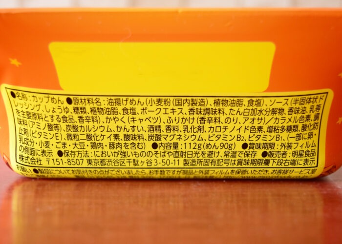特製マヨ・液体ソース・かやくが入っています。かやくの中身はキャベツです。
