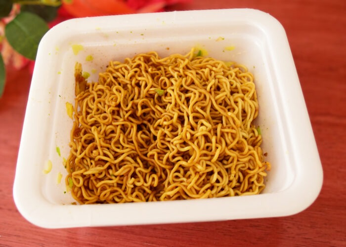 醤油味をベースにほんのりガーリックが漂ってきます。ポークエキスも入っていますが、あまり動物系の味はしません。肝心のバターですが、そこまで強調はしてこないで後味程度です。風味づけに近いですが、バターが多すぎると油っこくなってしまうため、あえて少なめにしているのかもしれません。筆者としてはもう少しバターっぽさが欲しかったですね。
