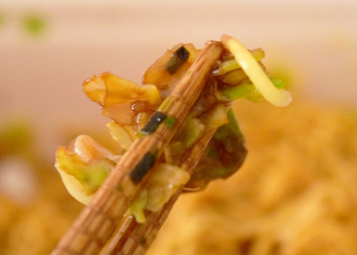 おまけ程度に入っているキャベツですが、醤油味と非常に合っています。キャベツバターという感じではなかったです。