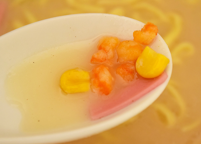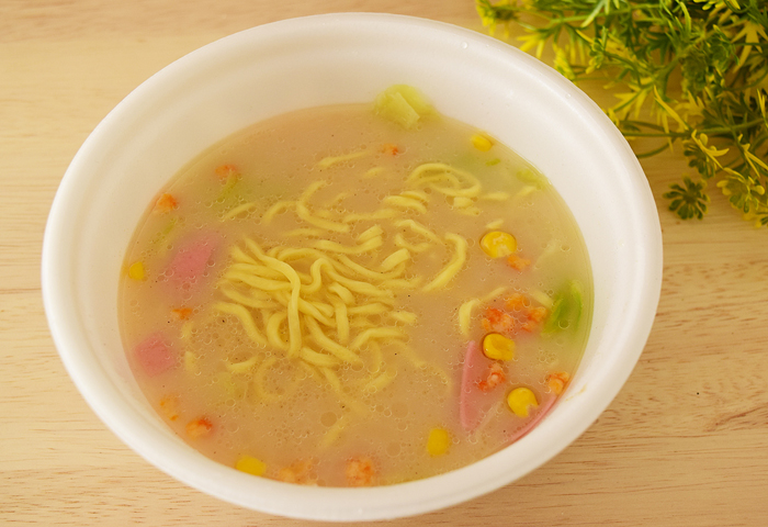 かやくは野菜よりかまぼこなどの練り物が目立ち、野菜はコーンがたくさん入っていました。もう少しキャベツなどがあればうれしかったですね。