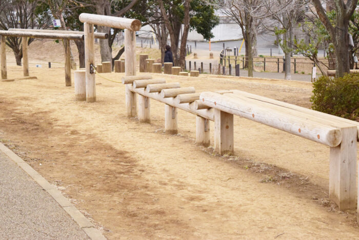 申し訳ない程度でしたが、簡易的な木製遊具が少しだけありました。なぜかこの遊具で遊んでいる子供はいませんでした。木製遊具のある場所は目立たない場所にあるので、もしかしたら木製遊具の存在に気が付いていないのかもしれませんね。