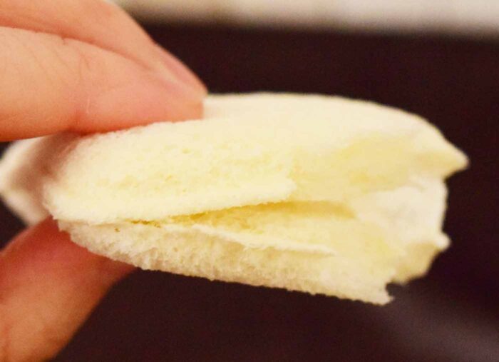 スナックサンド全般に言えますが、食べていくうちにパンが分離していくので食べる際は注意が必要です。