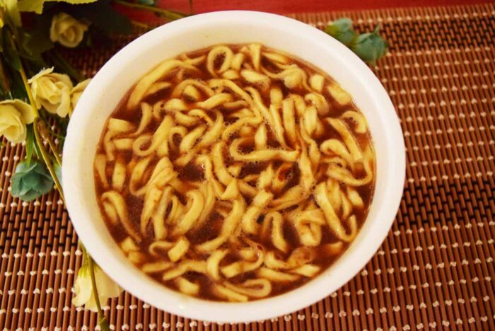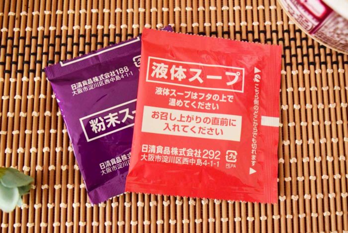 粉末スープと液体スープが入っています。粉末スープは先入れです。調理時間は熱湯を入れて5分。
