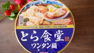 グルメファミマ「とら食堂監修ワンタン麺」を実食レビュー とら食堂は白河ラーメンでいう「とら系」元祖のお店です。豚骨と鶏ガラをメインとした醤油スープはあっさりしていてコクがあるといわれています。麺は太めのちぢれ麺が特徴です。とら食堂ファンは多く福島や関東を中心に一門が数多く出店しています。そんなとら食堂が監修したカップラーメン「とら食堂 ワンタン麺」298円(税込)がファミリーマート限定で2022年12月20日より販売。こちらの商品は2021年1月にも販売しているため、今回はリニューアル発売となります。公式HPによると「ファミマルで、福島・白河らーめんの人気店「とら食堂」監修のカップ麺が登場しました。 コシのある平打ち麺に鶏と醤油の芳醇な旨みのスープがよく絡みます。 もっちり食感のワンタンがたっぷり入っています。」とのことです。 2026.01.12グルメラーメン・そば・うどん(麺類)