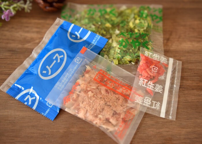 カップのなかにはソースの他にねぎ・紅しょうが・鰹節が入っています。