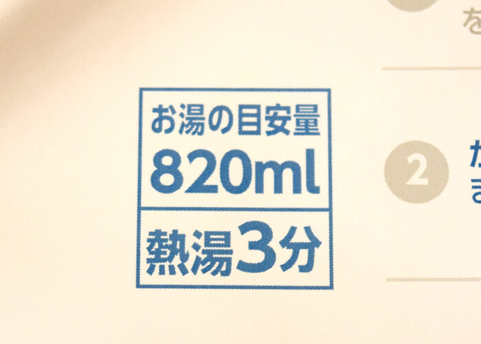調理時間は3分。湯量は820mLとかなり多めです。