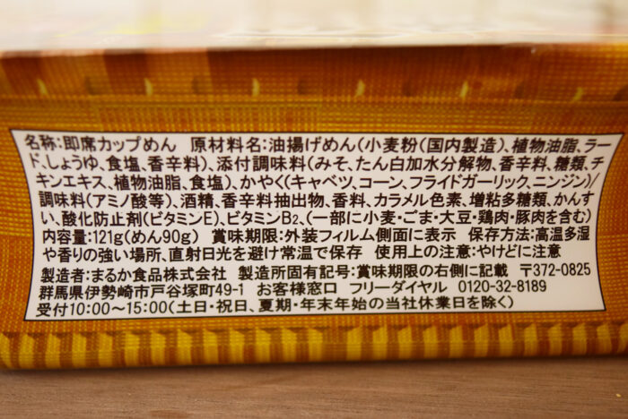 原材料を確認すると、にんにく(フライドガーリック)はタレではなく、かやくに入っているんですね。