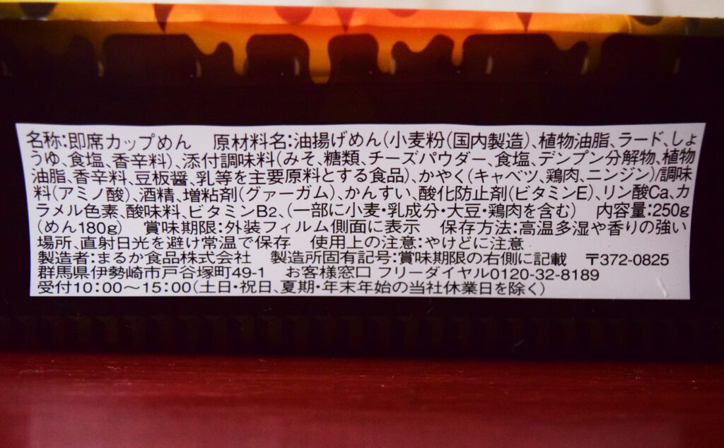 添付ソースの原材料を見るとみそ・チーズパウダー・豆板醤などが含まれていました。
