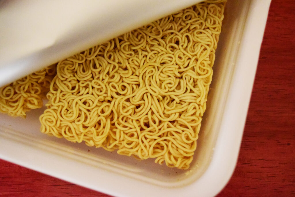 麺は普通のペヤングよりも細めです。調理時間は3分。