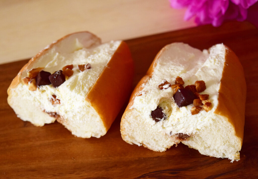 クリームはさっぱりしていて、量のわりにあっさり完食。パンの部分はねっちょりしておらず、さっぱりしたクリームとの相性は抜群です。さっぱりしているだけでなく、甘さも控えめ。