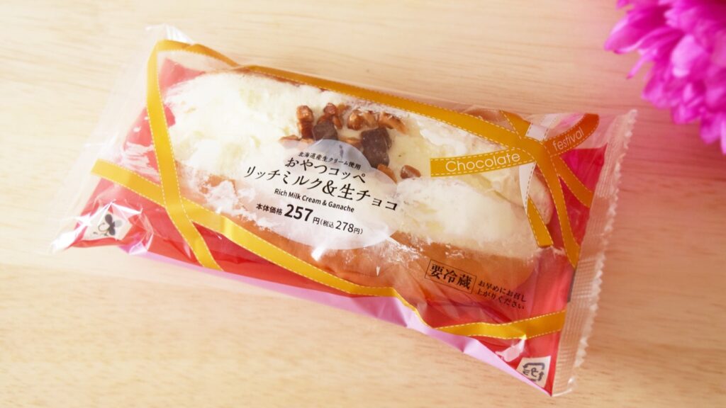 2022年2月8日に販売されたローソン「おやつコッペ リッチミルク&生チョコ」278円(税込)もその一つ。少々バレンタインを意識したようなパッケージですね。