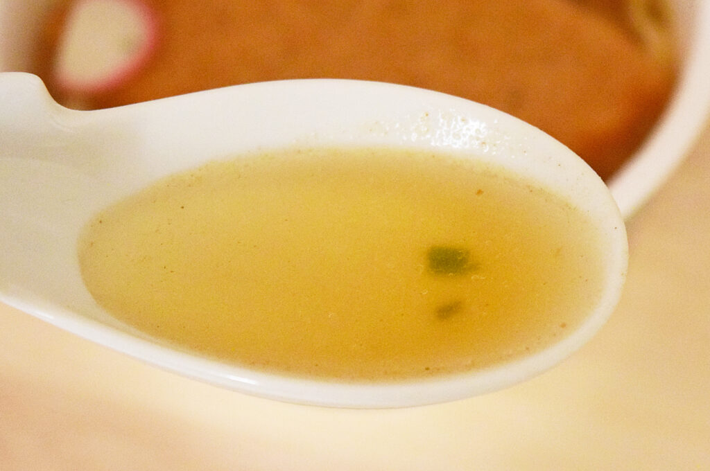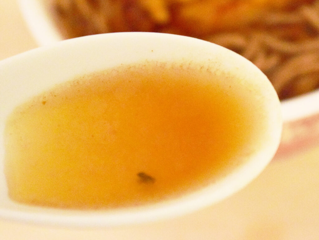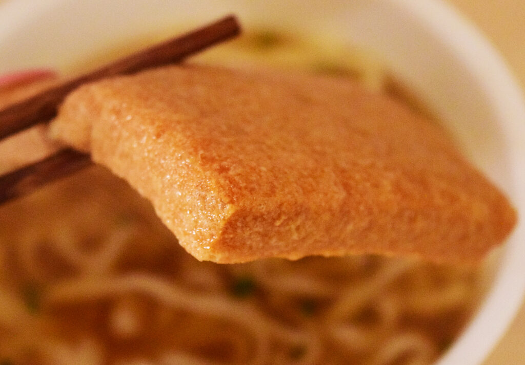 6種類の出汁が効いたつゆは昆布の味が強く、意外とさっぱり風味。塩分は普通のどん兵衛よりも多いはずですが、あまり濃さは感じられず、出汁の旨みを最大限界に活かされています。