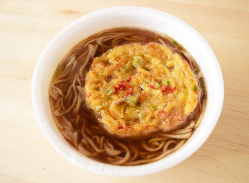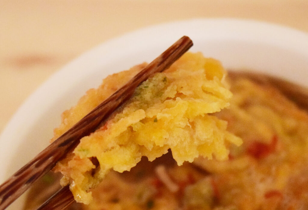 完成品はこちら。麺・スープ・かき揚げすべて見た目からして異なりますね。美味しそうです。