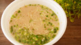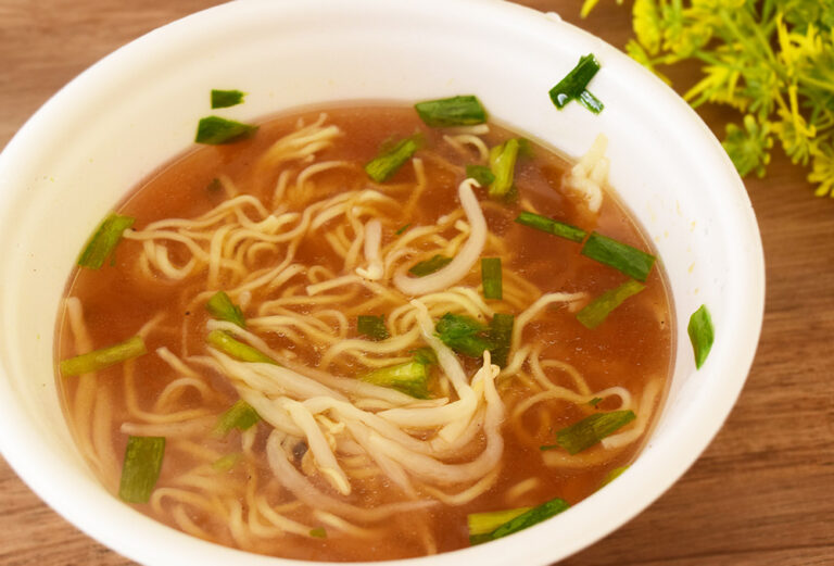 とろみがついた醤油ベースのスープはニラの出汁がしっかり出ています。粉末スープとは思えないほど、しっかりととろみがついているため、本格的サンマー麺に近い味わいを感じられますよ。