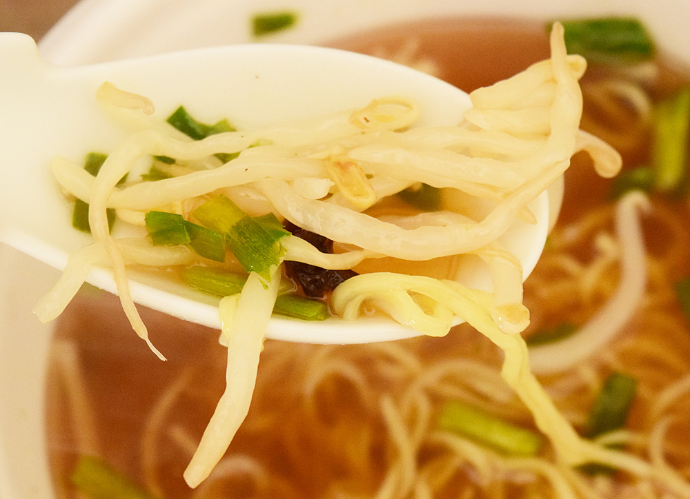 さすがにもやしのシャキシャキ感はなかったものの、とろみのついたスープとよく絡み合って良いですね。ニラの方が全体的に目立つため、もやしはニラに隠れるような感じでした。他のきくらげなどの野菜も食感がいいため、アクセントとして丁度良い内容でした。