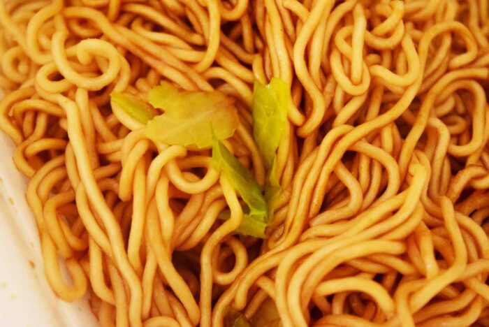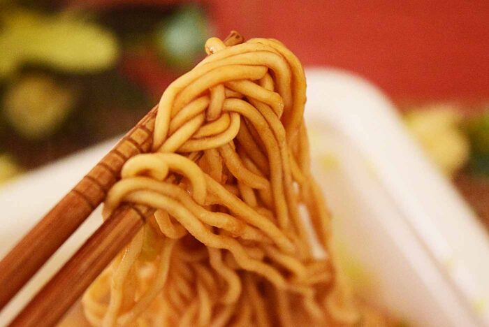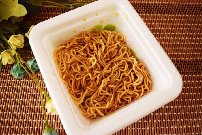 完成品はこちら。具材もキャベツのみで非常にシンプルなカップ焼きそば。