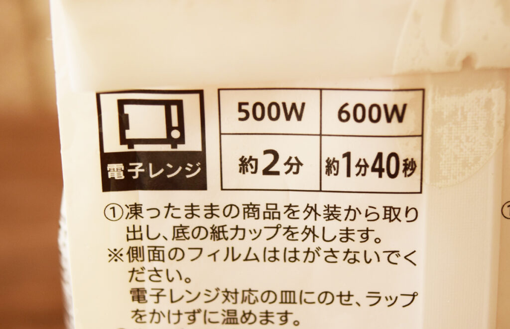 500Wで2分・600Wで約1分40秒電子レンジで加熱するだけ。袋のまま電子レンジに入れてはいけません。袋から商品を取り出して、パンケーキを電子レンジ対応のお皿にのせてから温めます。