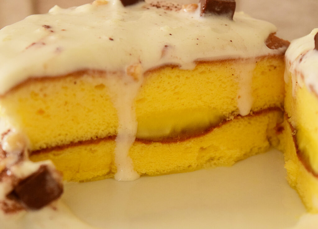 パンケーキにサンドされているカスタードクリームですが、ふわふわパンケーキを邪魔せず、均整がとれています。バランスが良いですね。
