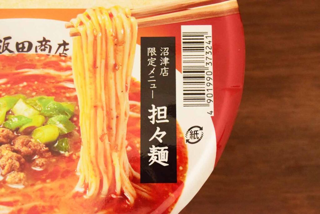 公式HPによると「神奈川県湯河原町の人気店「らぁ麺 飯田商店」唯一の別店である沼津店。その沼津店でのみ提供される“担々麺”の味わいをカップ麺にて再現しました。生麺のような口当たりで歯切れの良い、特許取得の独自製法ノンフライ麺を採用しています。鶏の旨みを利かせた醤油スープをベースに、練り胡麻とすり胡麻を合わせ、花椒やラー油を加えた麻辣味のスープに、挽肉や青ねぎ、ごま、粗挽き唐辛子が入った満足感のある一杯です。」とのことです。