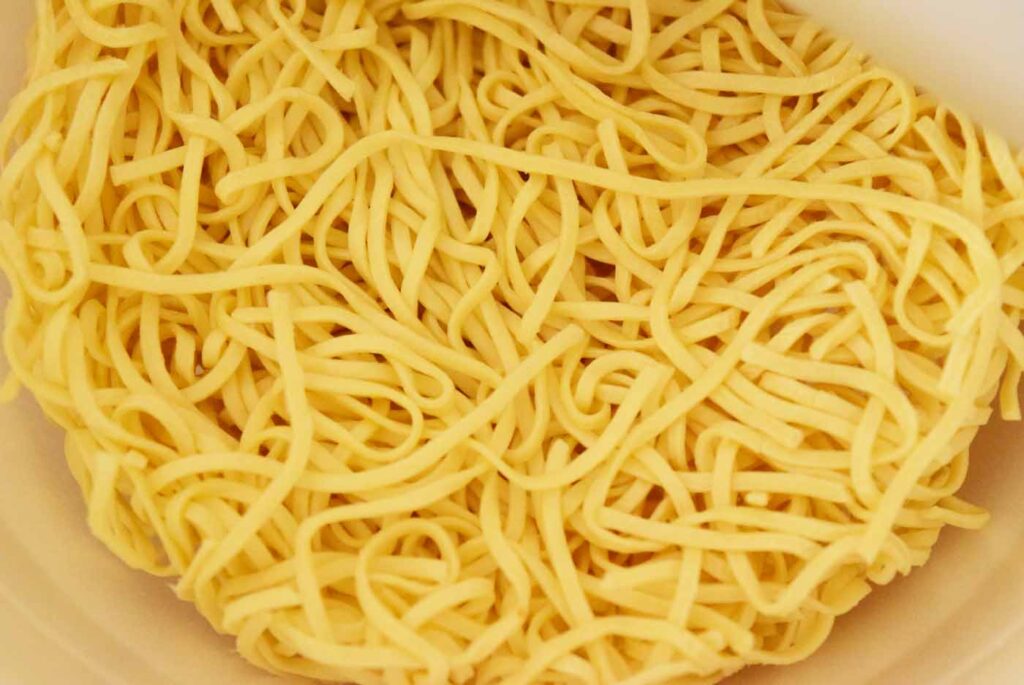 細くて平たい麺は表面がややざらざらしていて、スープをうまくからめとります。ノンフライ独特のコシをしっかり残しておりながら、もちっとした食感もあり、まさに生麺に近い食感でした。