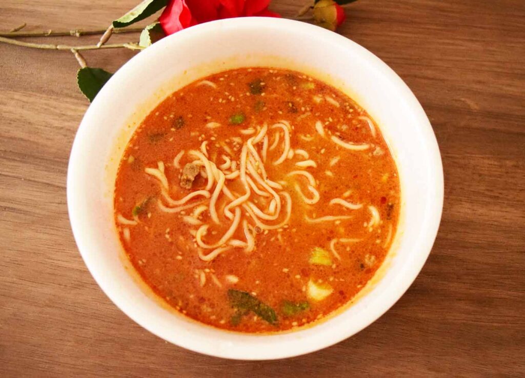 完成品がこちら。担々麺独特の辛そうな香りが漂ってきます。