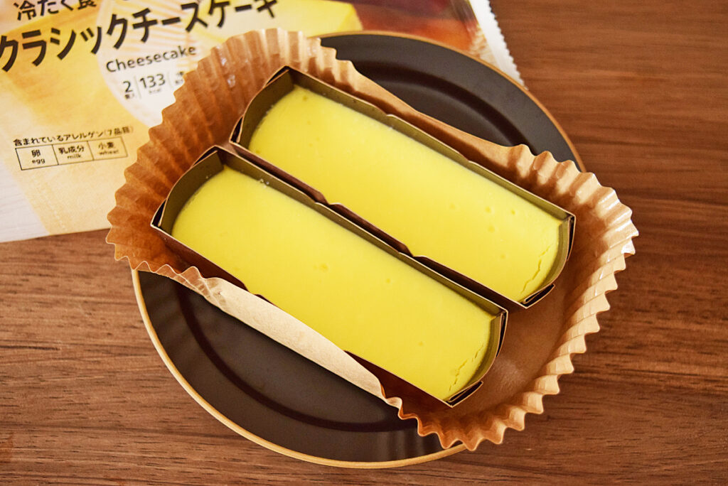 1袋あたり2本チーズケーキが入っています。おやつに食べるのにはぴったりのサイズ感。