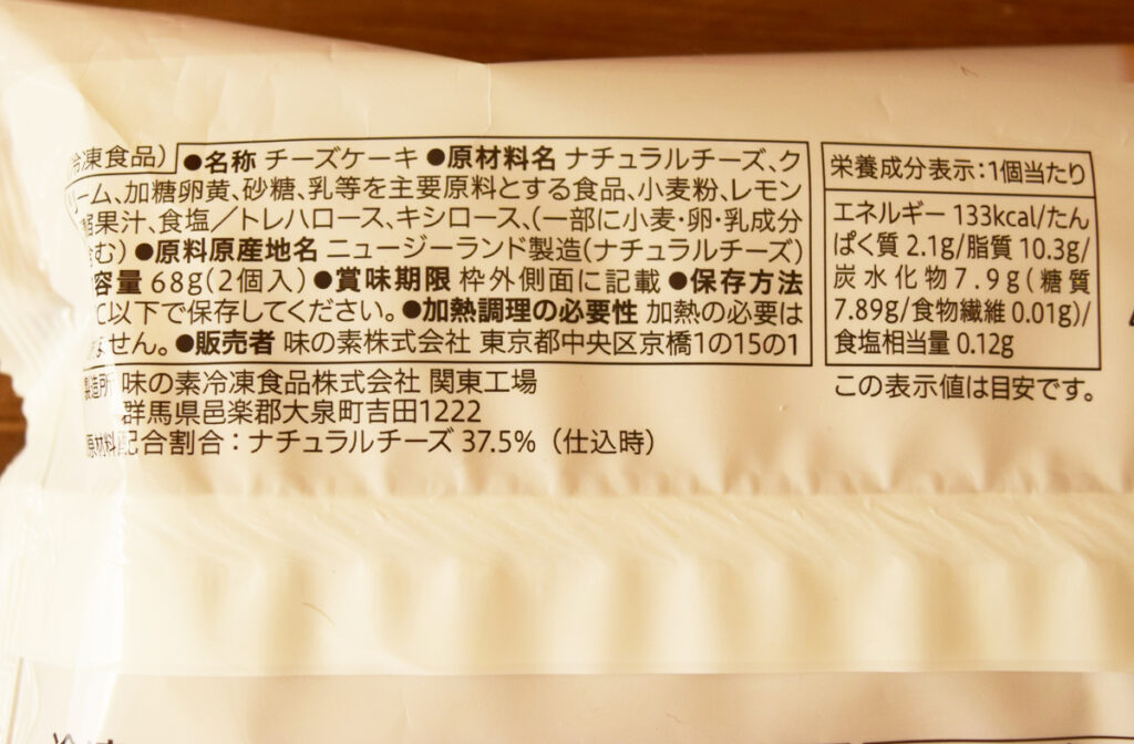 1個あたり133kcal。糖質7.89g。ナチュラルチーズは37.5%配合。