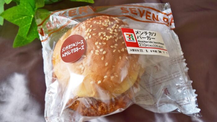 2022年6月からセブンイレブンでは「メンチカツバーガー」226円(税込)を販売しています。セブンイレブンの菓子パンコーナーに置かれているハンバーガーですが、ひときわ目を引くボリュームに思わず手に取ってしまった一品です。