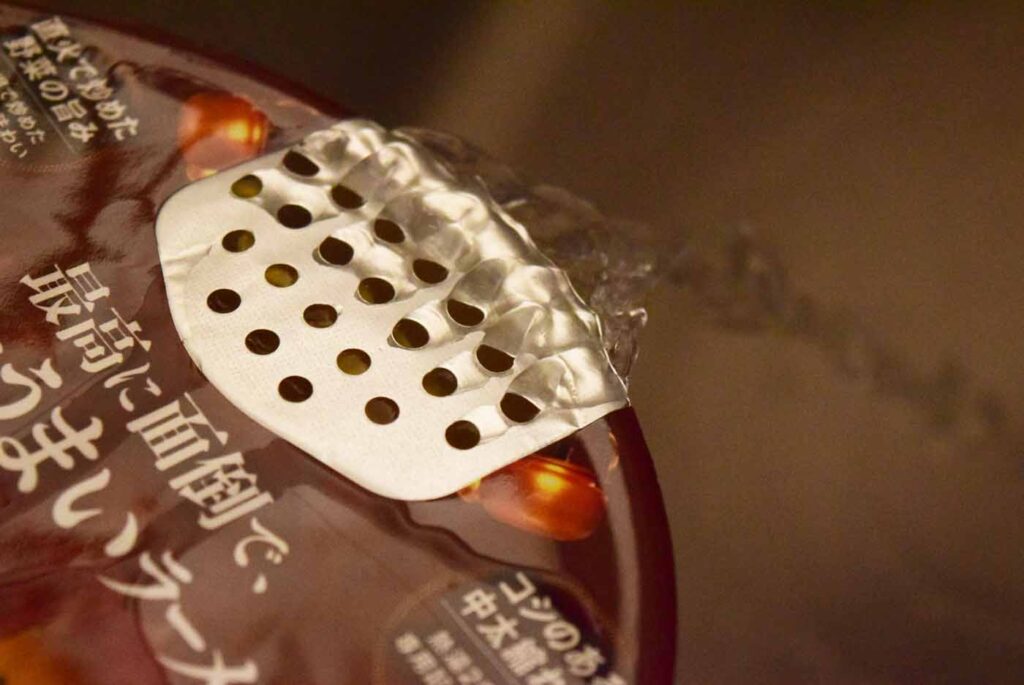 湯切り口はカップ焼きそばのようにふたの上の方にあります。