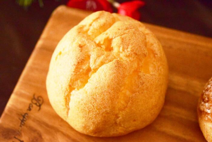 カリっと軽く焼かれたシュー皮が特徴の「こだわりたまごのカスタード&ホイップシュー」。持つだけで崩れてしまいそうなほど柔らかいです。