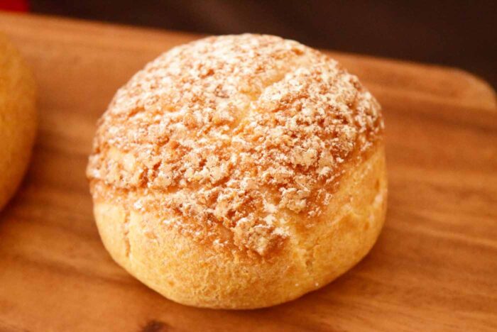 一方、アーモンド入りクッキーシューの「シューパティシエール」は持った感触は少し硬く、しっかりしています。