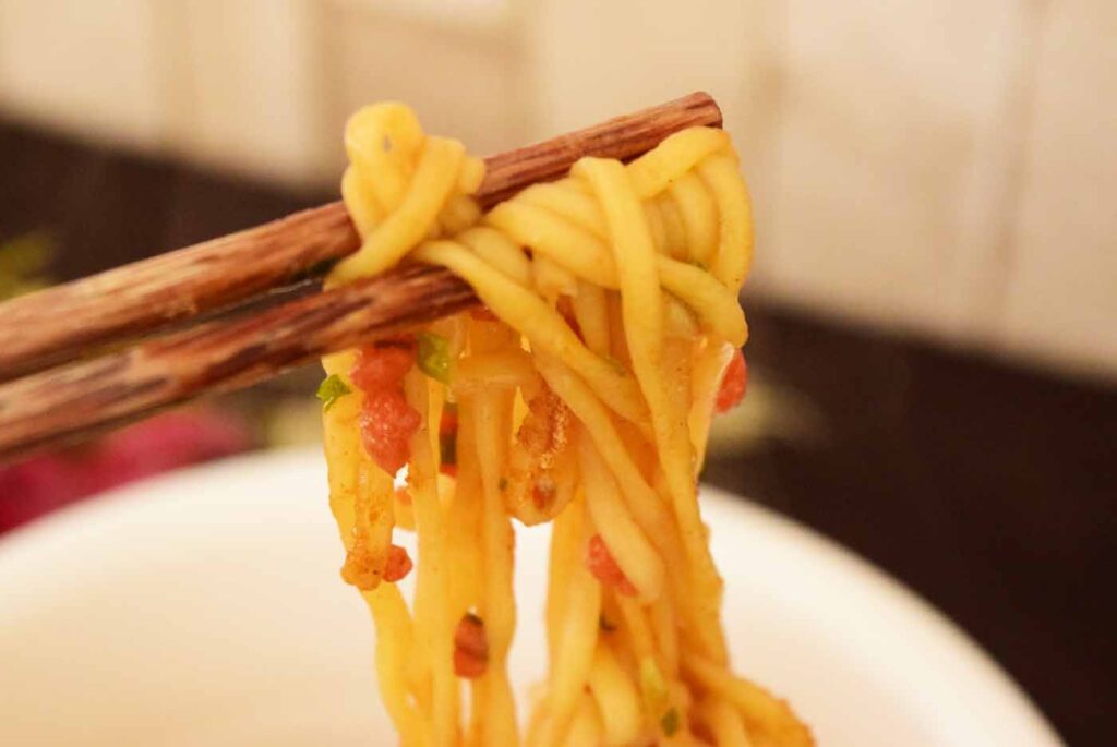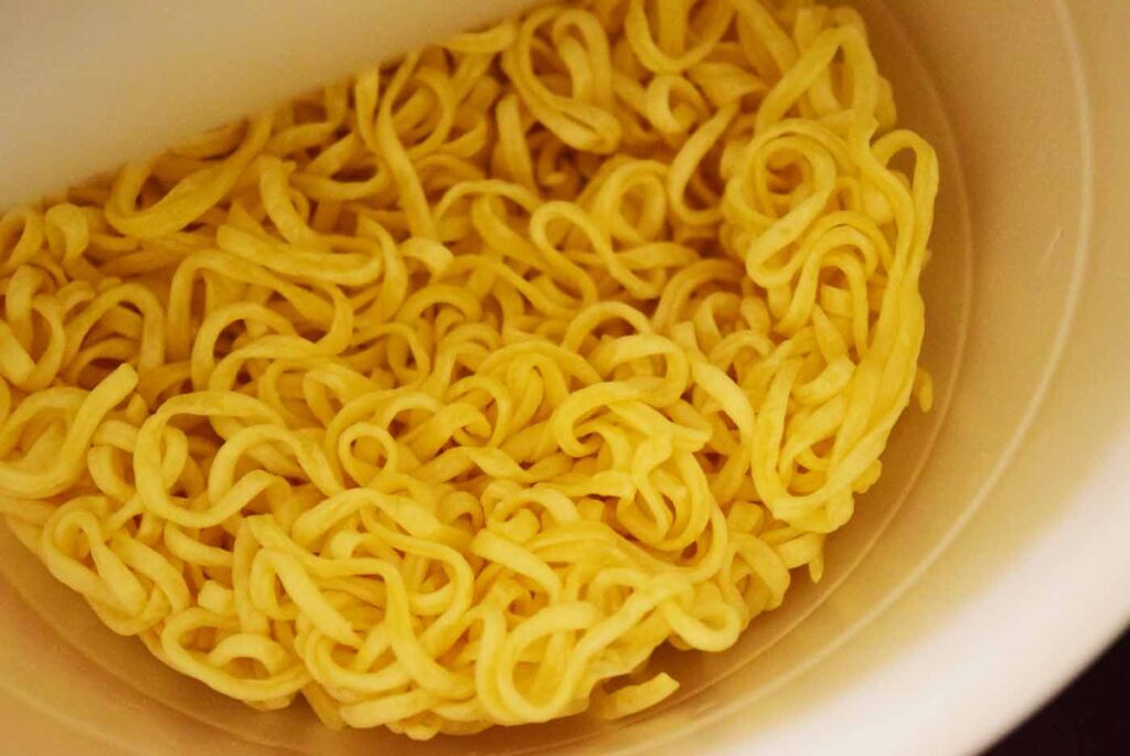 ノンフライ麺はお湯を入れて5分で完成します。