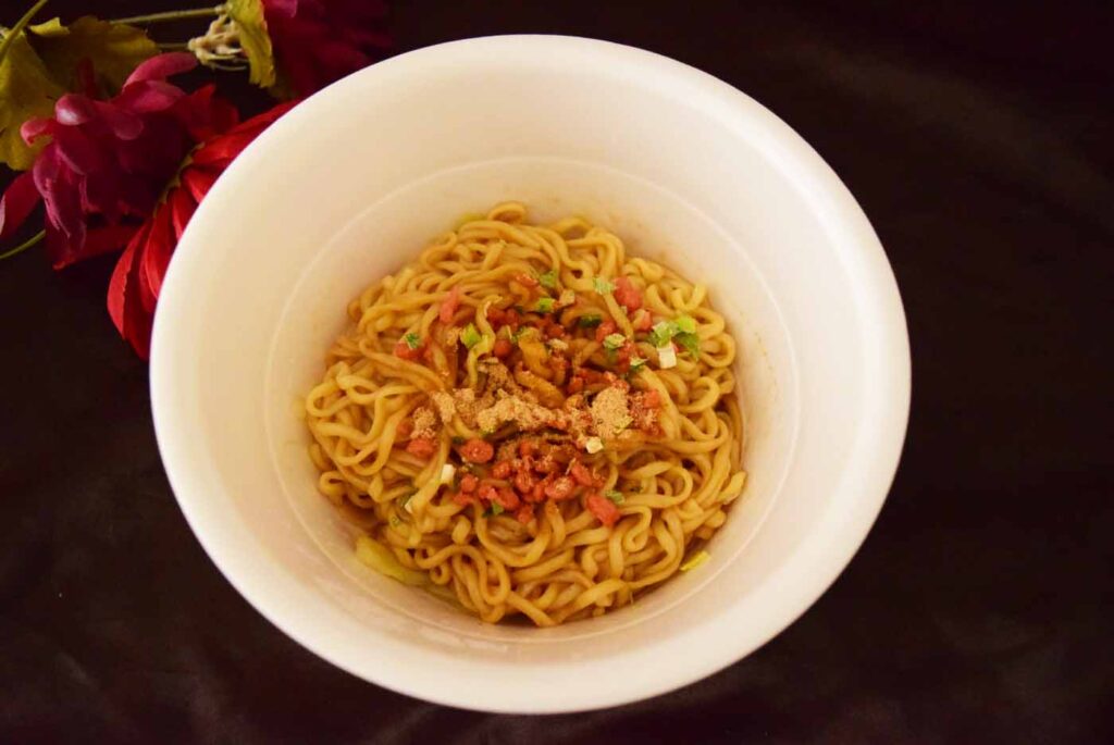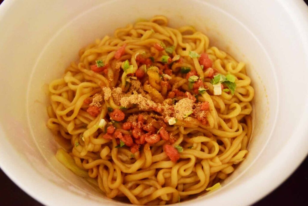 完成品はこちら。カップに対して麺の量が少ないような…