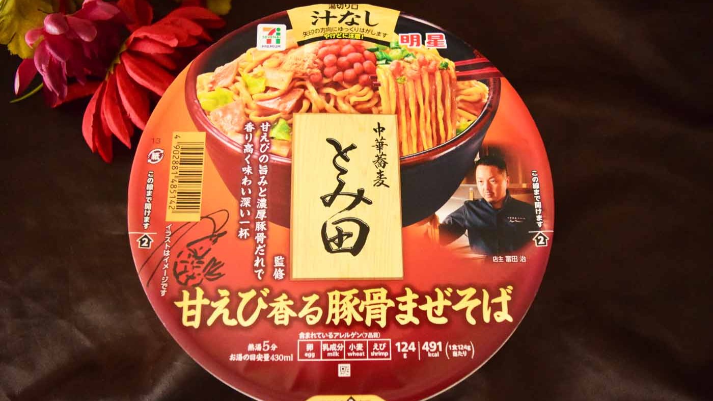 2022年11月28日にセブンイレブンは「中華蕎麦とみ田監修 甘えび香る豚骨まぜそば」278円(税込)を新発売しました。セブンイレブンととみ田のコラボは長く、チルドのラーメンでも多くの商品でコラボしていますよね。