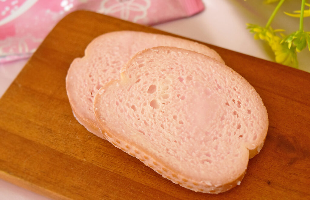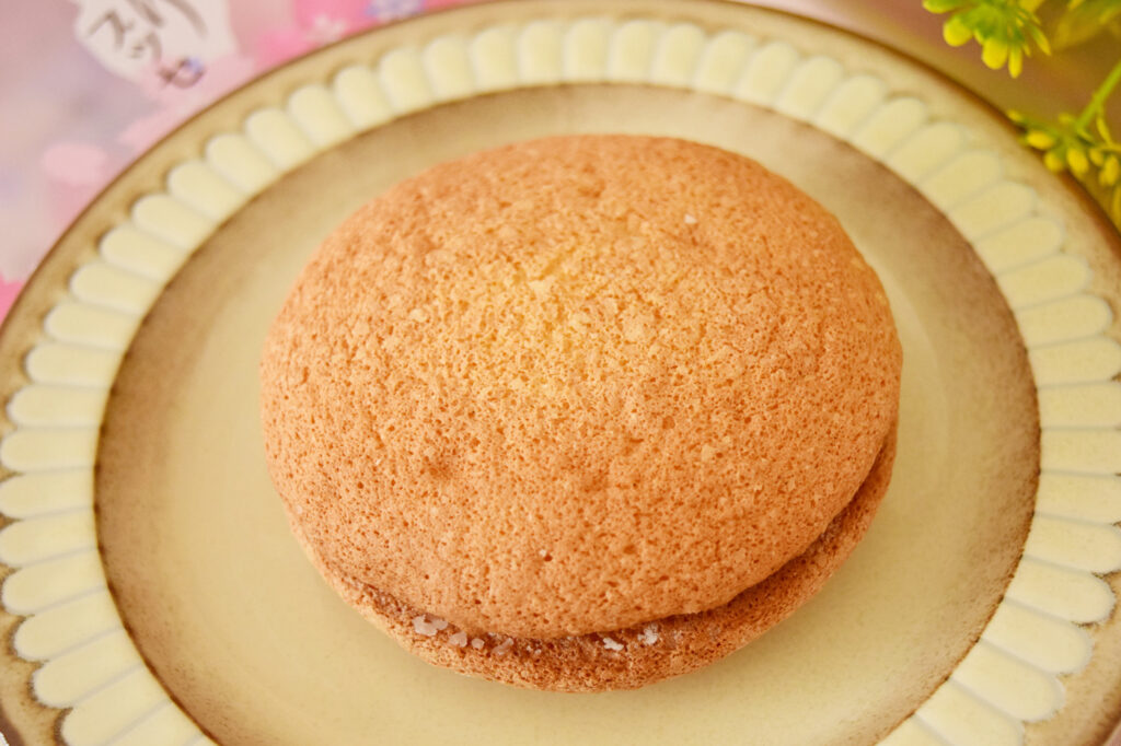 表面はきめ細やかな生地が特徴のブッセ。さくらの甘い香りが漂ってきます。