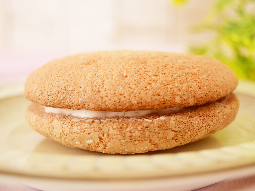 ふっくら柔らかく焼き上げたブッセ生地に、ホワイトチョコガナッシュ、無塩バターを使用したさくらバタークリームをサンドしました。桜の葉の塩漬けミンチによるふんわりと香る桜、ホワイトチョコチップを加えることで食感にアクセントを加えました。ふんわり食感で優しい甘みのブッセ生地と、さくらの香り広がるバタークリーム・ホワイトチョコレートの風味が相性ぴったりの焼き菓子です。