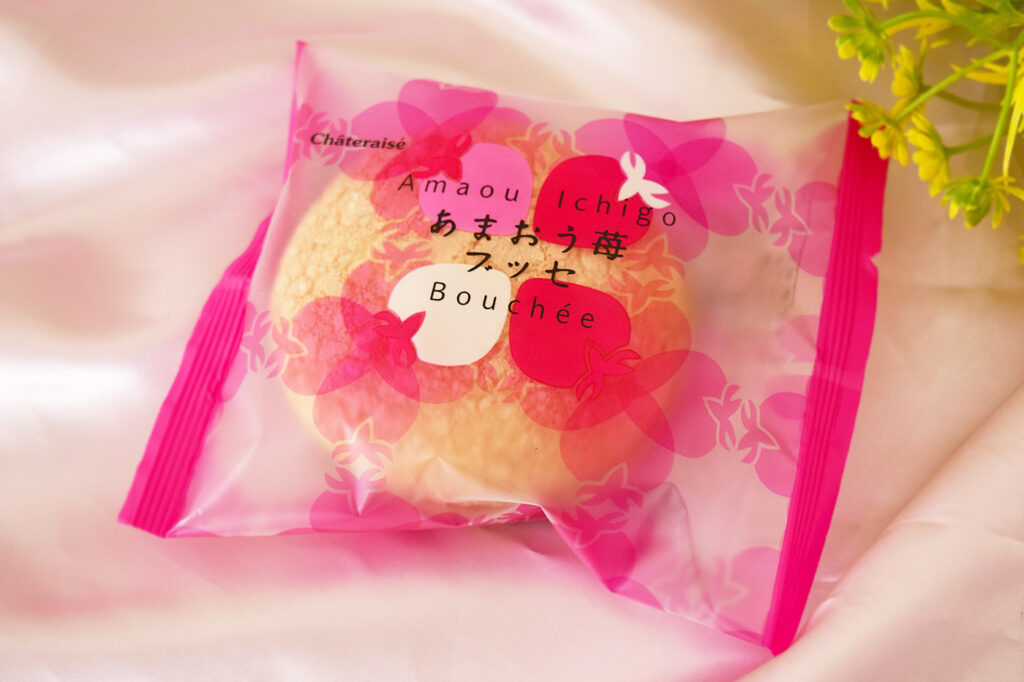 さくらブッセよりもピンクが目立つ「あまおう苺ブッセ」108円(税込)。