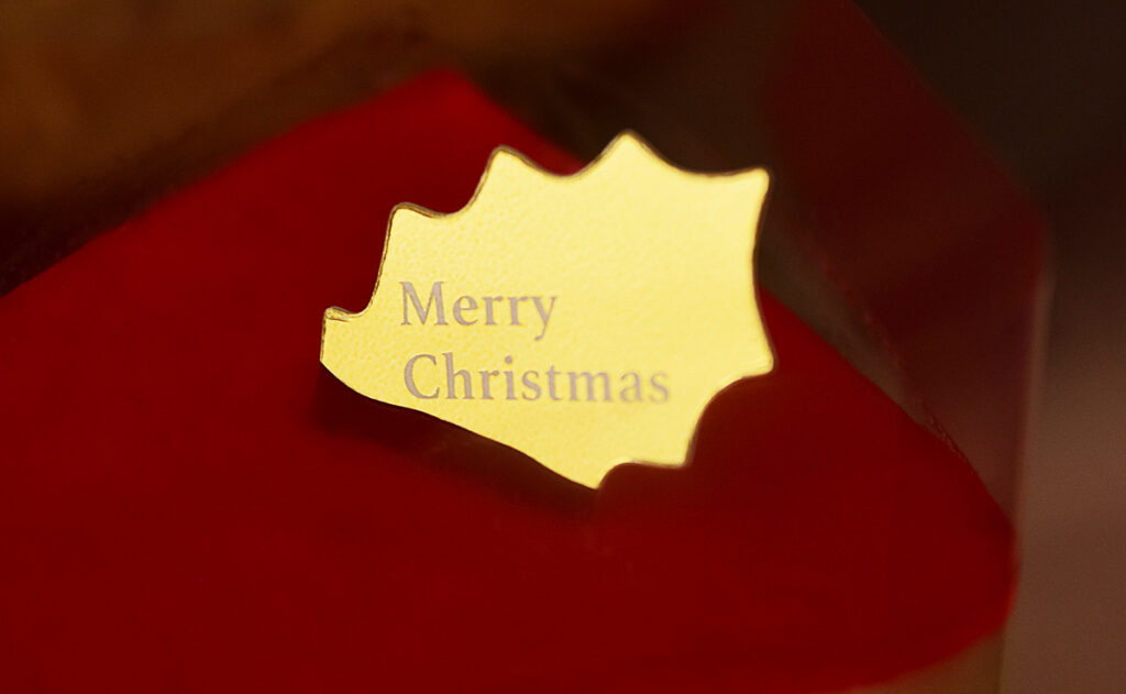 「Merry Christmas」と書かれている金色の飾りもついています。