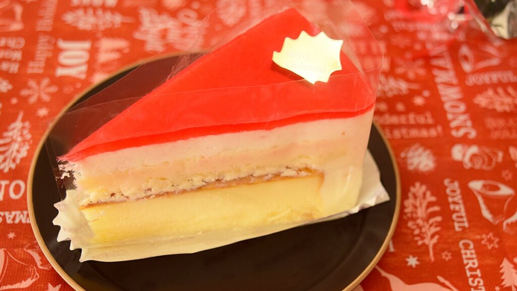 クリスマス用のケーキとしては、おとなしめな見た目ですが、ラズベリーナパージュは赤くてクリスマスカラーになってますし、クリスマス用のケーキにぴったりですね。