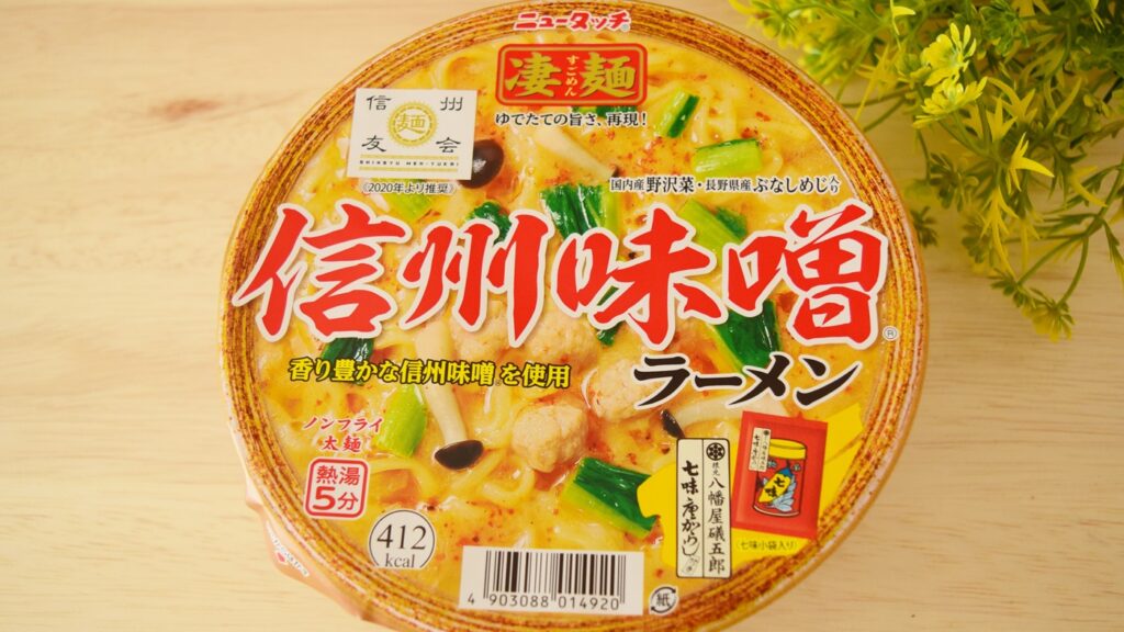 長野県の名産といえば味噌ですが、信州で作られる信州味噌を知っている人も多いのでは。ご当地カップラーメンを数多く発売しているニュータッチ凄麺シリーズでは「信州味噌ラーメン」278円(税抜)を販売しています。長野県内ラーメン店が組織した「信州麺友会」が推奨したカップラーメンがどんな味なのか?実食してみました。