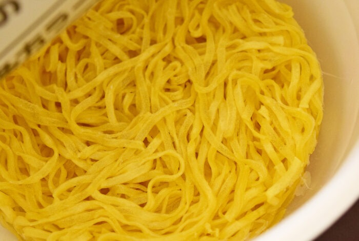ノンフライ平打ち麺はこちら。調理時間は熱湯で5分です。